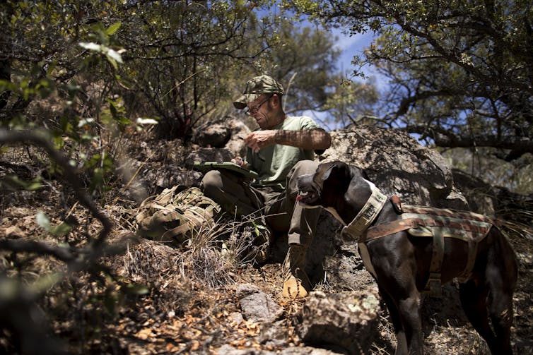 Scott Warren, who works with the Tucson-based aid group No More Deaths, was arrested in January[15] and charged with harboring two undocumented migrants in a humanitarian aid outpost, where they were given water and fed.